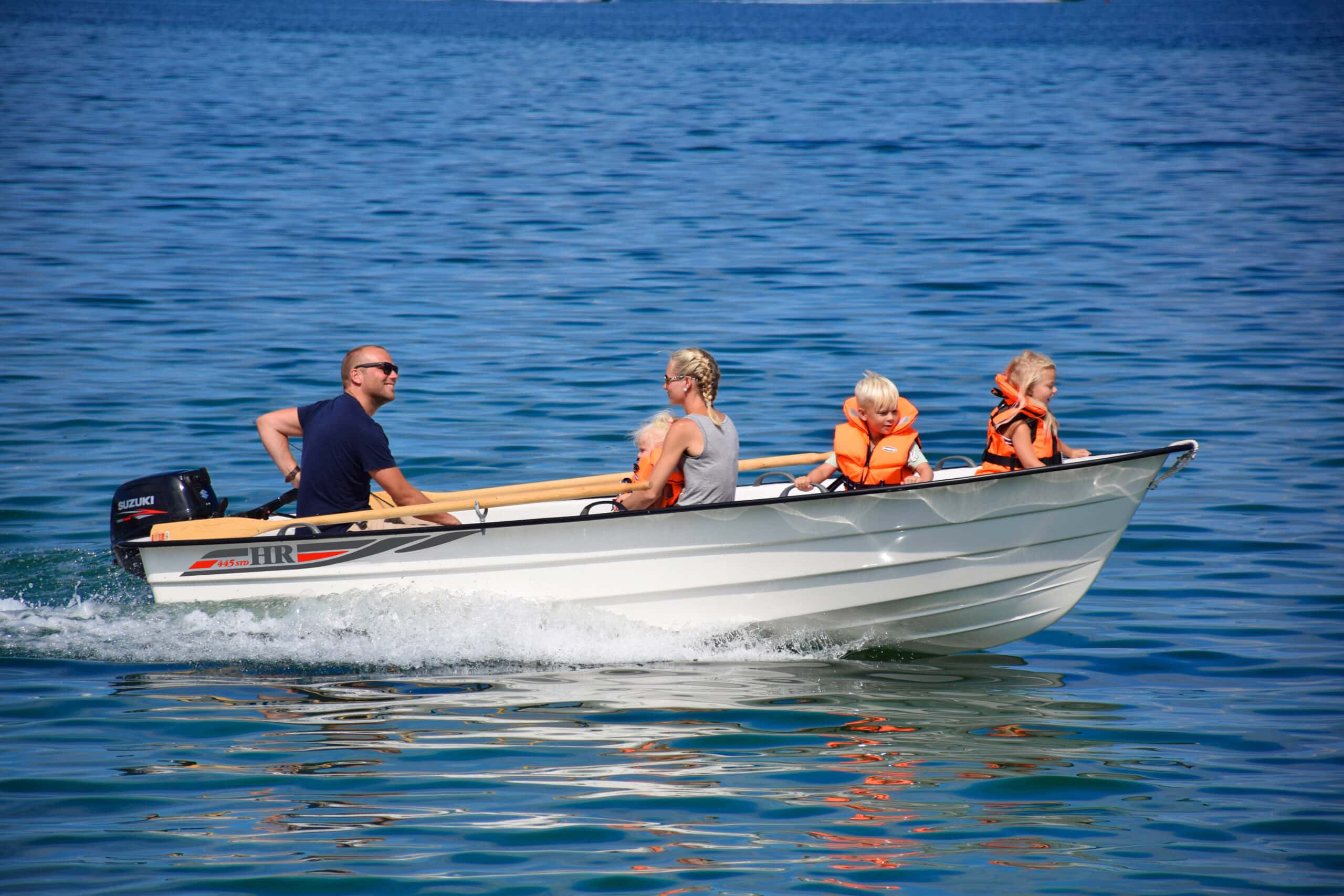 Får vi presentera HR 445 std som är en allroundbåt med en skrov-konstruktion som liknar våra pulpetbåtars skrov, men ändå enkel och robust som våra övriga roddbåtar. Det breda skrovet med de höga friborden gör båten säker och trygg. Den stabila konstruktionen gör också att den kan bära en 20 hk fyrtaktsmotor med fartresurser strax över 20 knop. Man skulle kunna kalla den en ”Motorroddbåt”.